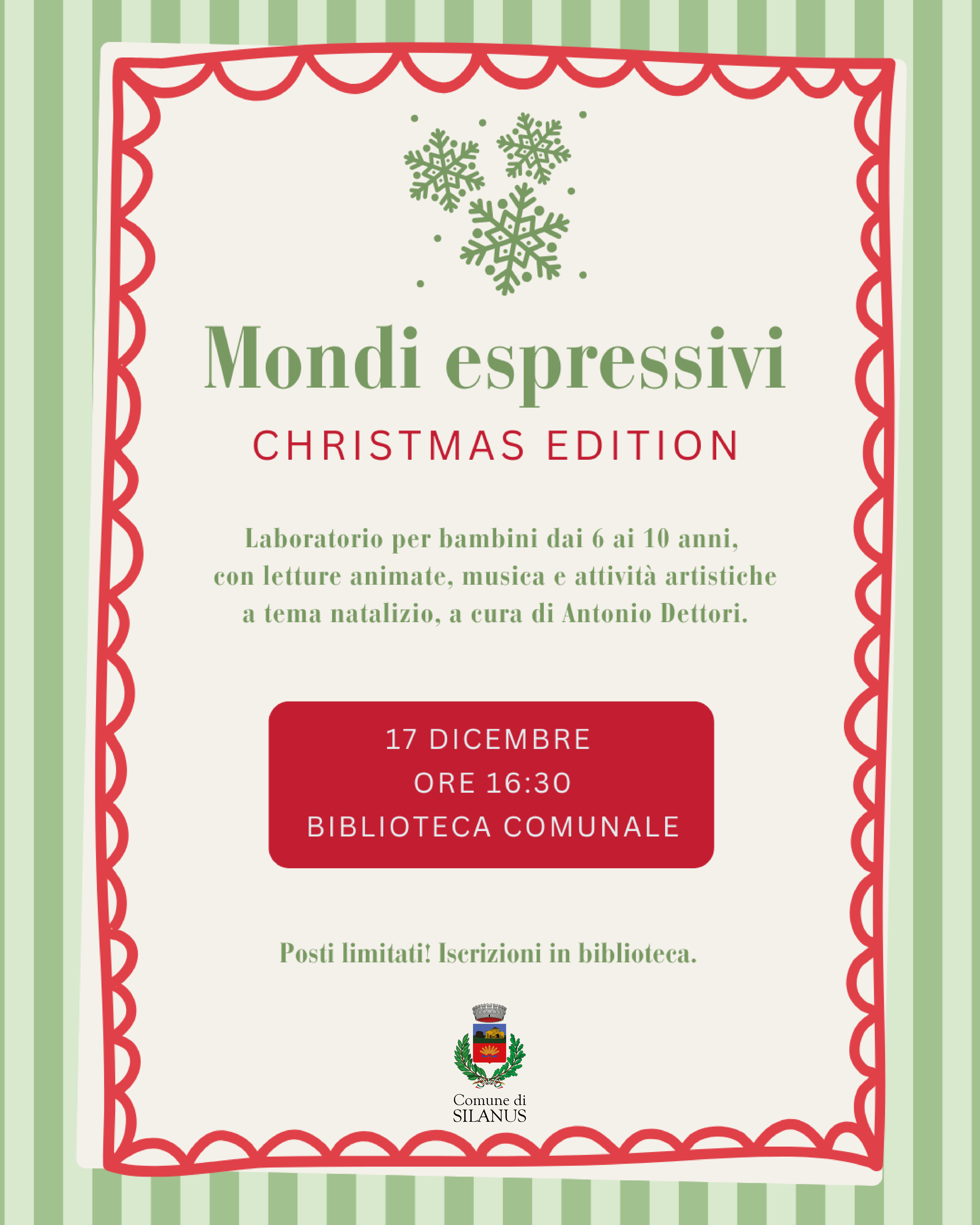 Il laboratorio, curato da Antonio Dettori, accompagnerà bambini e bambine dai 6 ai 10 anni in un percorso fatto di letture animate, musica e attività artistiche a tema natalizio.