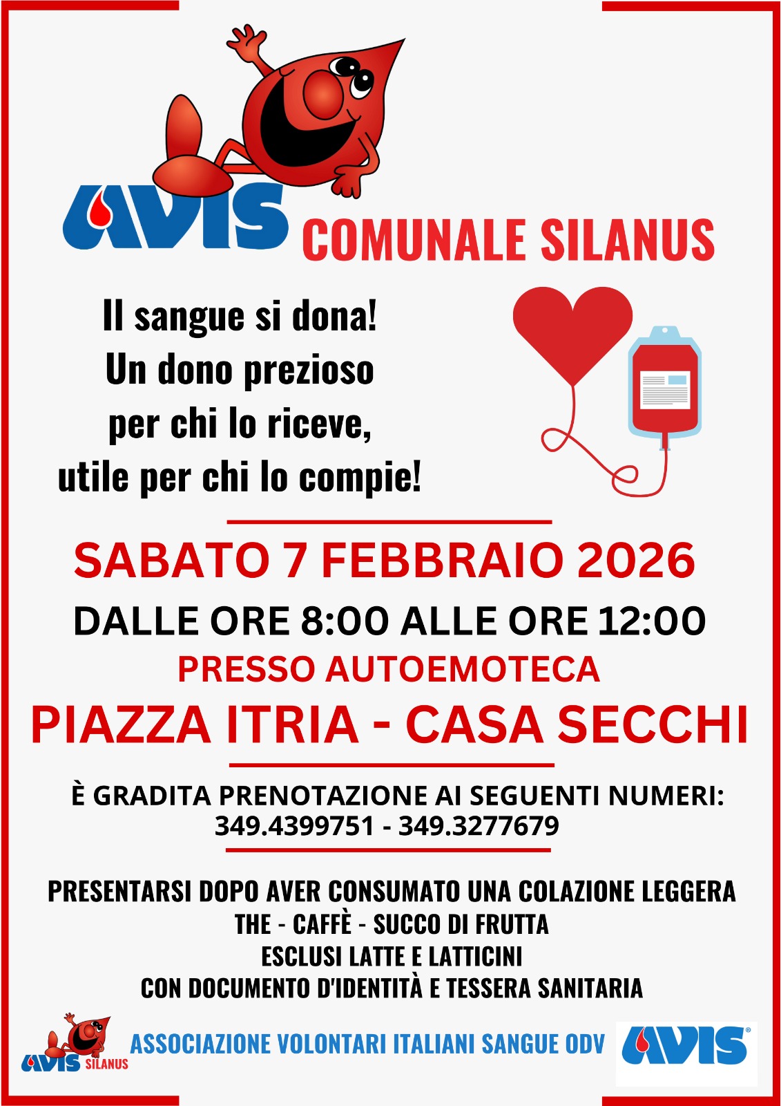 Locandina a cura dell’AVIS Silanus scaricabile qui sotto.
