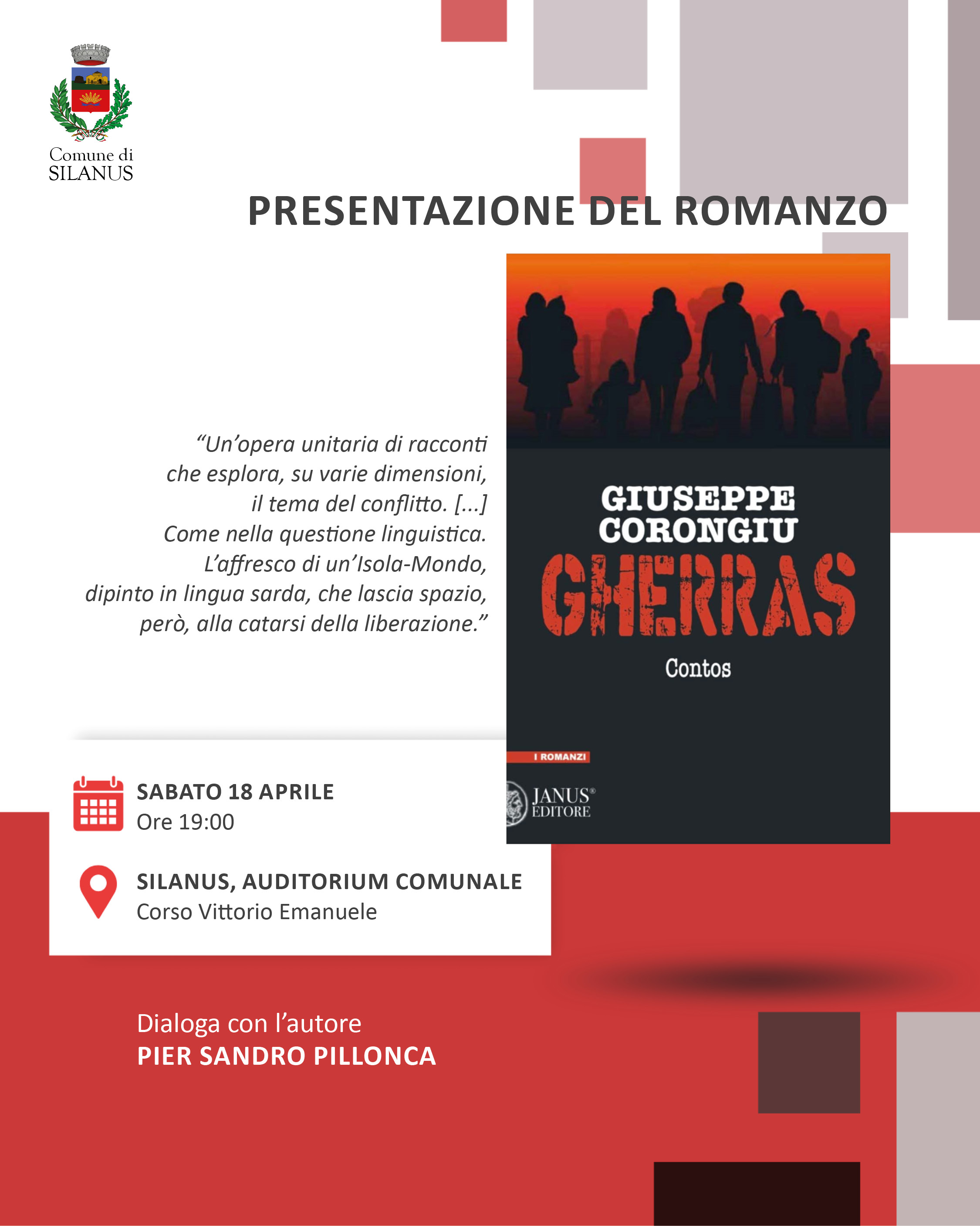 Sabato 18 aprile, alle ore 19:00, presso l’Auditorium comunale di Silanus (Corso Vittorio Emanuele), ospiteremo la presentazione del libro “Gherras” di Giuseppe Corongiu, pubblicato da Janus Editore.
