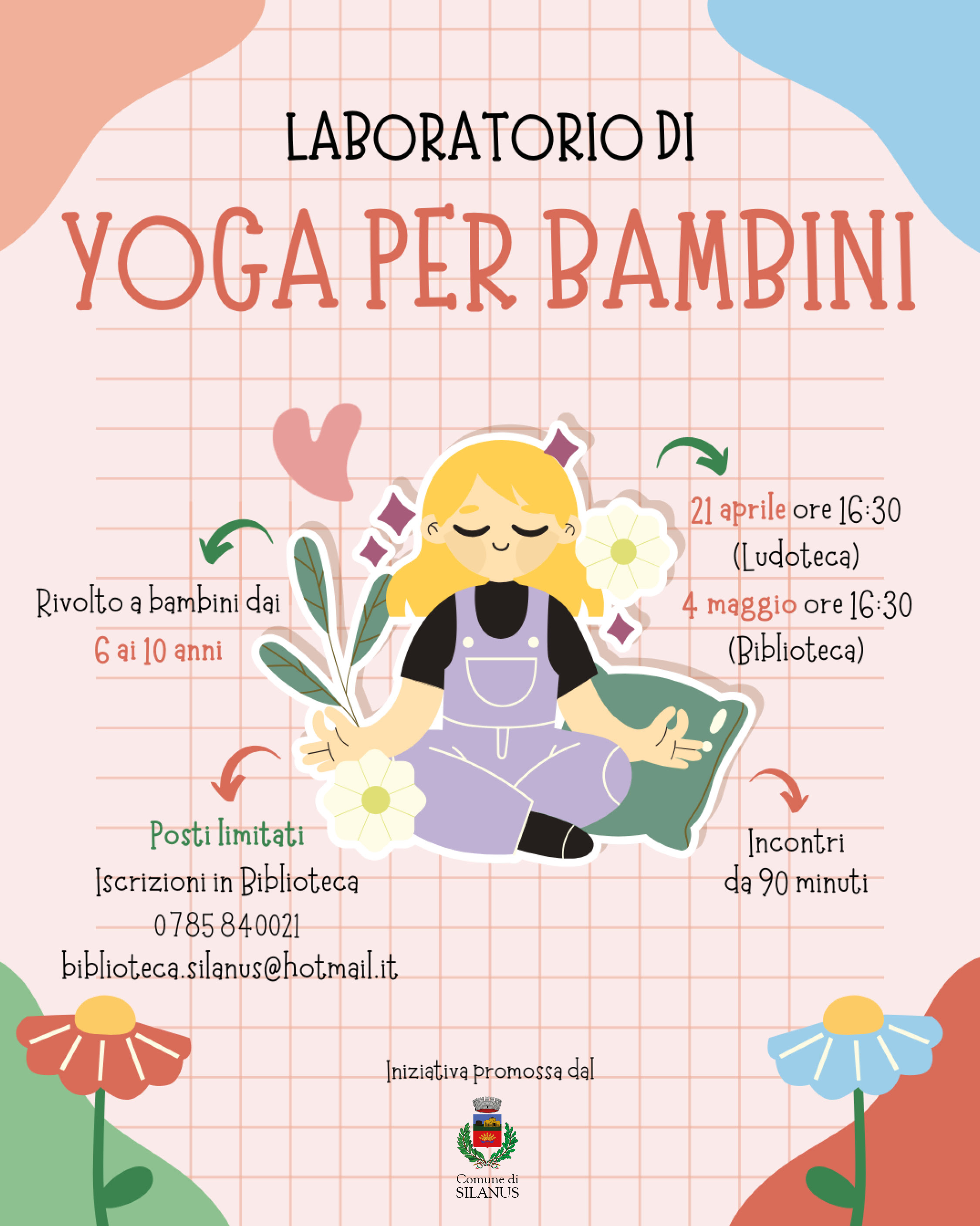 L'amministrazione Comunale propone attività laboratoriale di yoga dedicata ai bambini dai 6 ai 10 anni, pensata come momento di movimento e benessere.